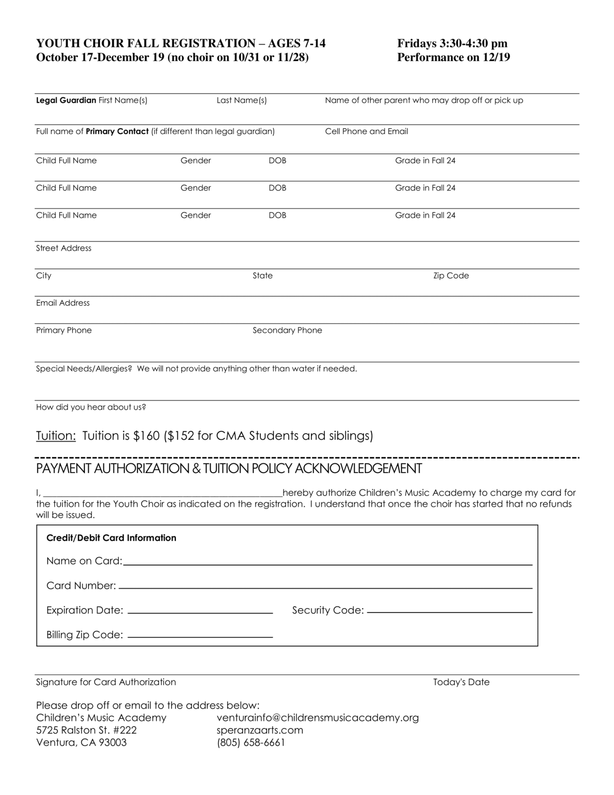 Youth Choir Registration Form Download